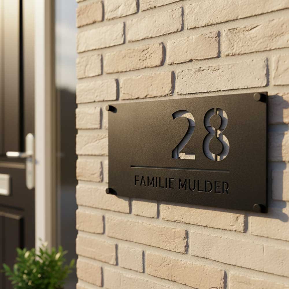 Gemaakt van eersteklas roestvrij staal en afgewerkt met een stijlvolle zwarte poedercoating, introduceert het Crest naambordje voor de voordeur niet alleen jou en je huis, maar zet ook meteen een verfijnde toon bij de entree. 14 cm x 28 cm.