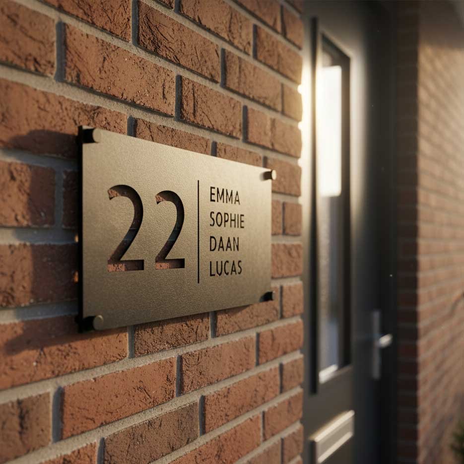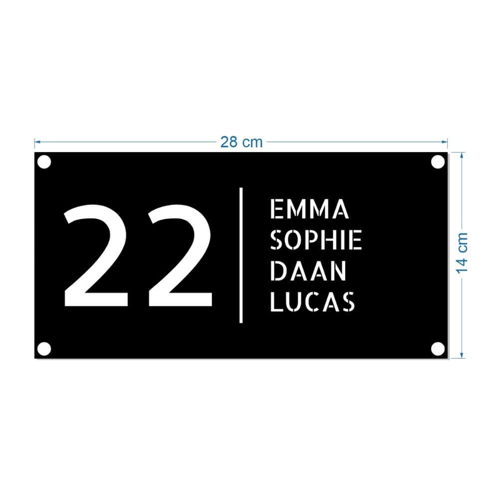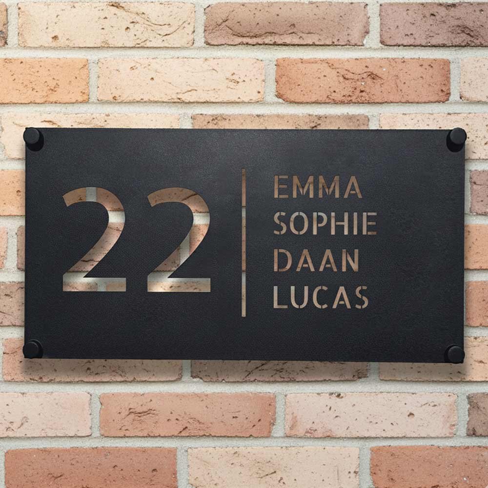 Gemaakt van eersteklas roestvrij staal en afgewerkt met een stijlvolle zwarte poedercoating, introduceert het Lumo naambordje voor de voordeur niet alleen jou en je huis, maar zet het ook meteen een verfijnde toon bij de entree. 14 cm x 28 cm.